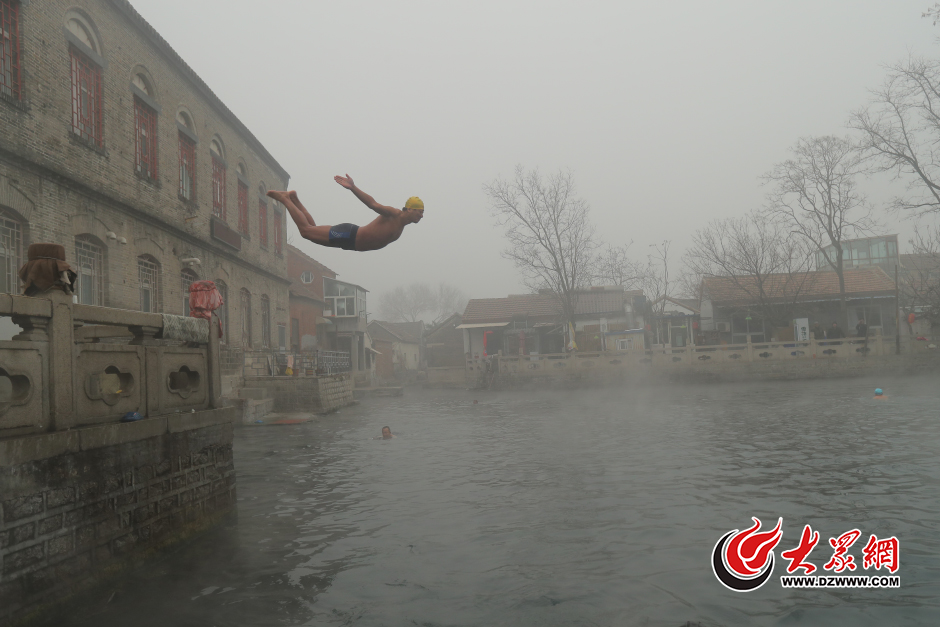 12月20日,大范围雾霾继续肆虐,山东“全面沦陷”,济南,严重雾霾天气未能阻挡王府池子的冬泳爱好者。 根据山东城市空气质量实时监测显示,截至20日8:00,山东已有济南、淄博、莱芜、日照、临沂、枣庄、济宁、菏泽8市陷入严重污染水平,其中临沂市AQI达到500爆表值。大众网记者 王长坤 摄