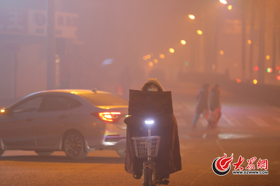 12月20日,山东济南,市民在雾霾中出行。 根据山东城市空气质量实时监测显示,截至20日8:00,山东已有济南、淄博、莱芜、日照、临沂、枣庄、济宁、菏泽8市陷入严重污染水平,其中临沂市AQI达到500爆表值,济宁、枣庄突破400,分别为403和402;德州、聊城、泰安为重度污染,青岛、烟台、威海为中度污染,滨州、东营、潍坊为轻度污染。大众网记者 王长坤 摄