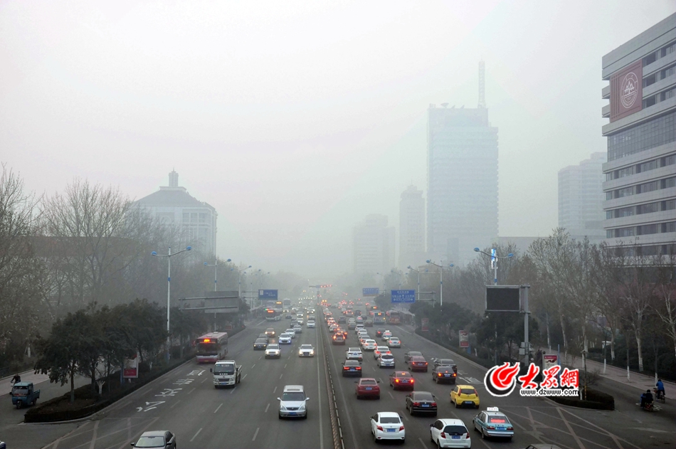 12月20日,根据山东城市空气质量实时监测显示,截至20日8:00,济南陷入严重污染。图为经十路上车辆川流不息。实习记者 刘玉凤 摄
