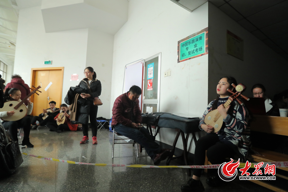 2月14日,2017艺考正在火热进行着,也吸引了数以百万的“追梦人”。山东济南,在山东艺术学院音乐类艺考的侯考区内,因为没有地方练习,不少考生就坐在考场外狭小的走廊里,忙着进行最后的考前准备,地上的灰尘沾满了她们时尚的服装。大众网记者 王长坤 孙杰 摄