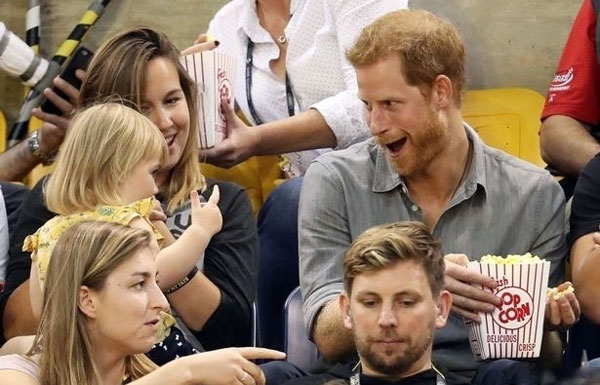 英国王子看球赛被2岁女孩“偷”爆米花 表情亮了