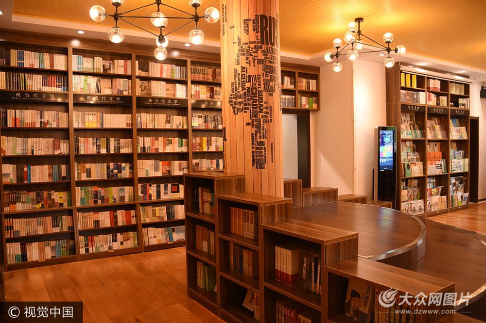 2017年10月16日,一家具有现代设计感装修风格的“高颜值”书店落户山东聊城大学东校区,该书店四周湖水环绕,环境优雅,书店内精致小巧的吊灯,米色舒适的凳子,巨大的落地窗,搭配出了“文艺范”。