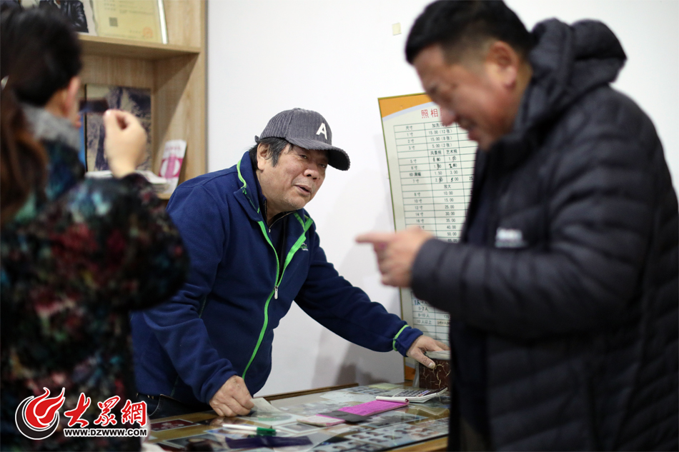 位于济南市经三路的皇宫照相馆内,63岁的摄影师刘贵林像往常一样为顾客拍摄肖像照片,并做后期影调的处理。(亓翔 摄)