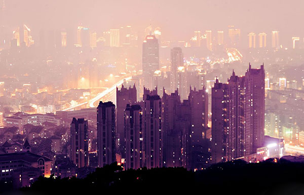 青岛:大雾笼罩 夜色迷人