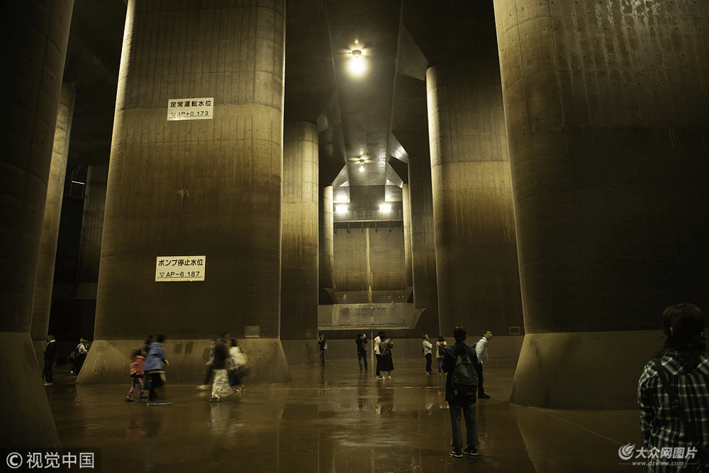 当地时间2018年6月20日,日本埼玉县春日部市,世界上最大的下水道系统,正式名称为“首都圈外郭放水路”,位于埼玉县春日部市的地面50米之下。世界上最大的下水道系统,正式名称为“首都圈外郭放水路”,位于埼玉县春日部市的地面50米之下。它是世界上最大的地下洪水分流设施,旨在缓解暴雨和台风季节城市主要水道和河流的泛滥。该设施的设计目的是在暴雨或台风过后,将洪水从周围地区抽走,平均每年使用7次,同时也成为了一个旅游景点,该设施每天有三次活动,供游客参观这个巨大的地下水箱。