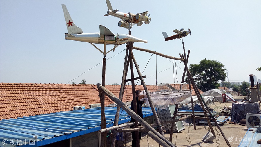 为防“喵星人”偷吃鱼 日照一农家院现三架山寨“战斗机”