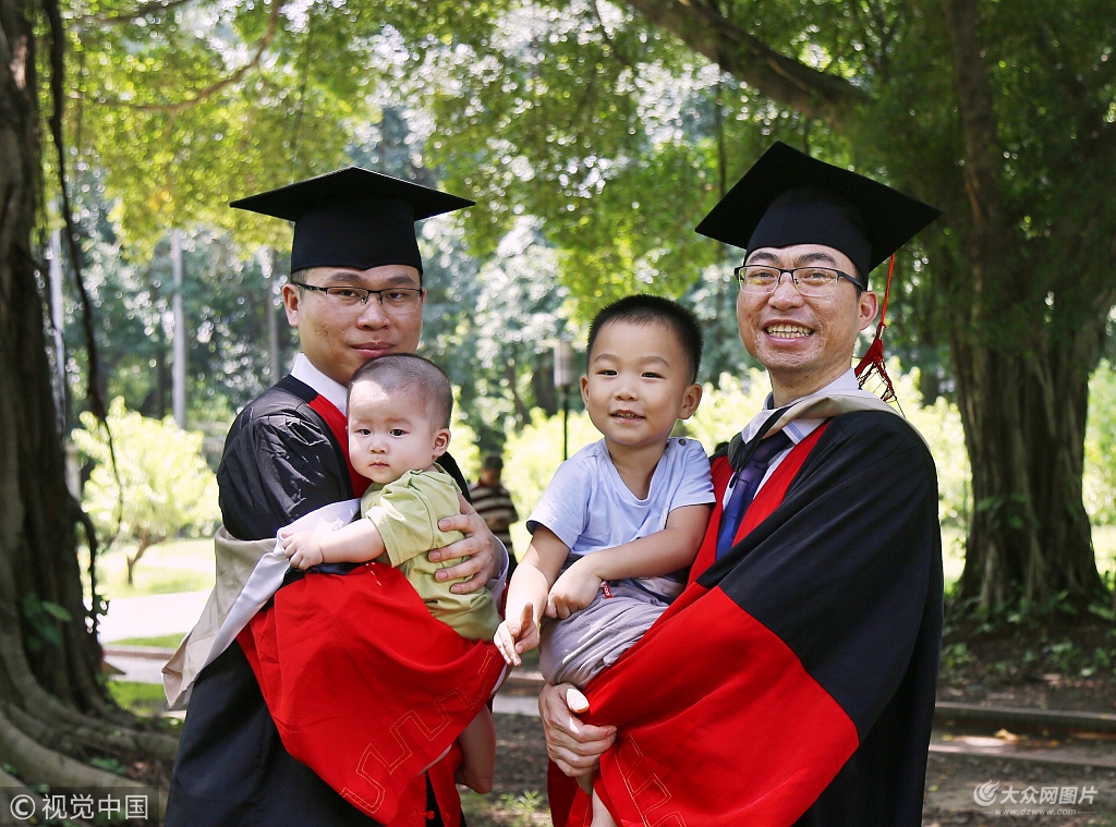 2018年6月29日,广州,南方医科大学毕业典礼在校本部举行,南医大共有4347名毕业生,仪式结束后,博士毕业生携宝宝合影留念。