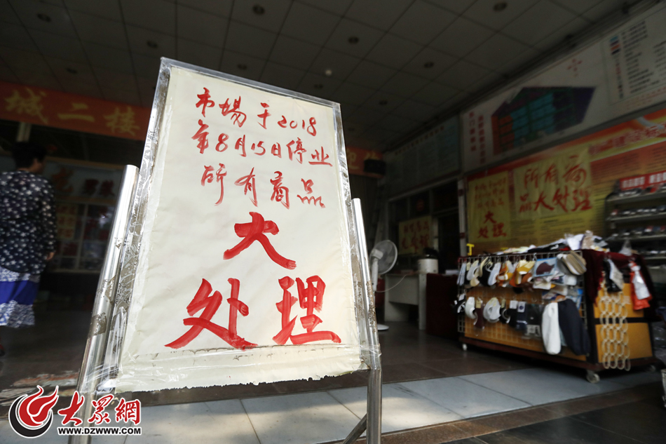 大众网济南7月25日讯 近日,始建于1994年的济南东门小商品批发市场贴出告示,将于今年8月15日开始停业改造。很多商户都已经开始大打折扣。据现场工作人员介绍,改造需要的时间目前还尚不能确定。(大众网、山东24小时记者 亓翔)