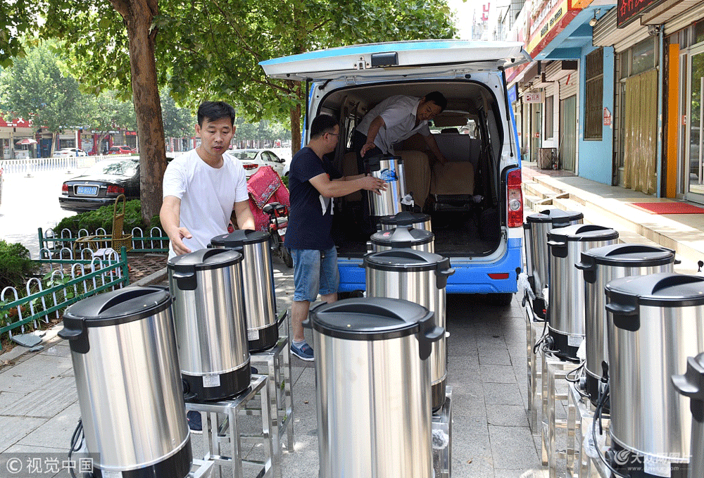 2018年7月30日,山东省临沂市沂南县退伍军人、共产党员曹贵然自费购买开水桶,在沂南县城爱心店铺的支持配合下,累计为环卫工人设立了30处 “爱心供水点”,曹贵然和员工每天将矿泉水按时送到各个供水点,确保环卫工人随时免费喝到放心热开水。沂南县苏村镇曹贵然退伍后自主创业成功,创办的旅游公司评定为3A级旅行社。他看到高温季节环卫工人饮水困难,就萌发了为环卫工人设立 “爱心供水点”的想法。他的善举受到当地群众和环卫工人的称赞。