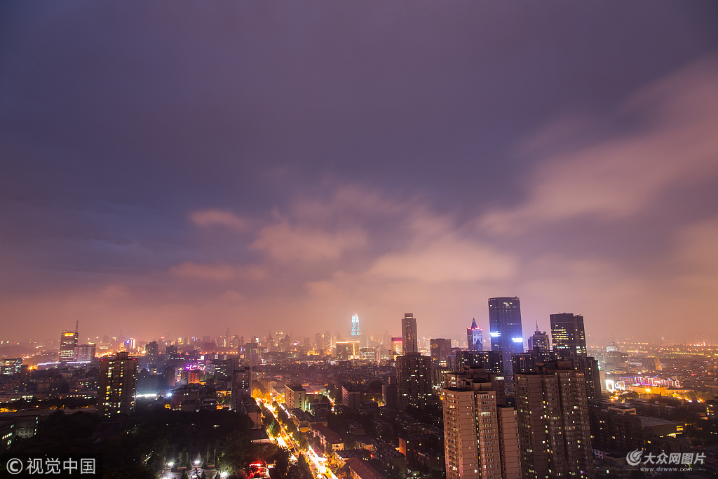 2018年8月13日晚,济南,受台风摩羯过境影响,城市下起了阵雨。日落之后,雨渐渐停了,济南的空气被洗刷干净,出现美丽的夜景。