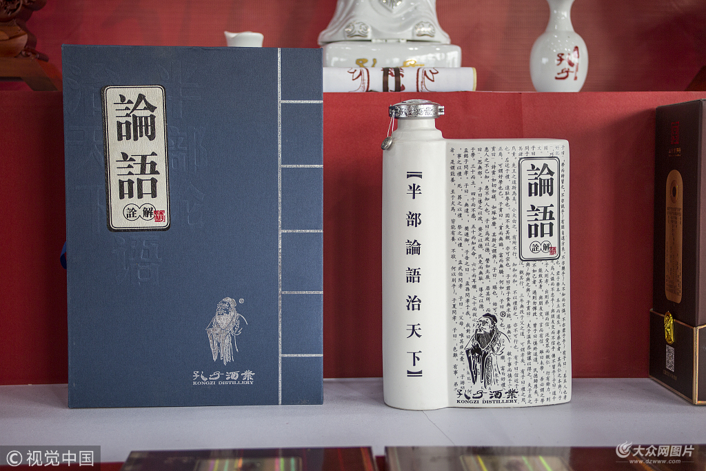 2018年10月13日,山东滨州。 在滨州举办的山东省第80届糖酒商品交易会上,各参会酒业在白酒包装上下足了功夫,各种具有浓郁中国风特色的白酒包装争奇斗艳,成为本届糖酒会上的一大亮点。