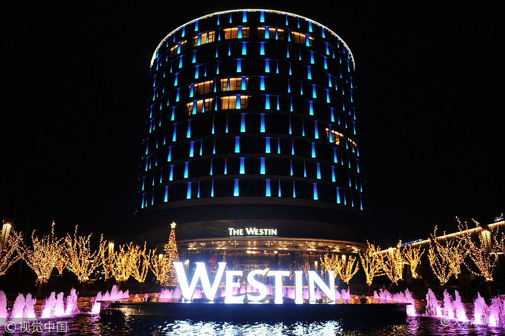 2018年12月1日,山东青岛西海岸新区一酒店,刚刚点亮的圣诞树。