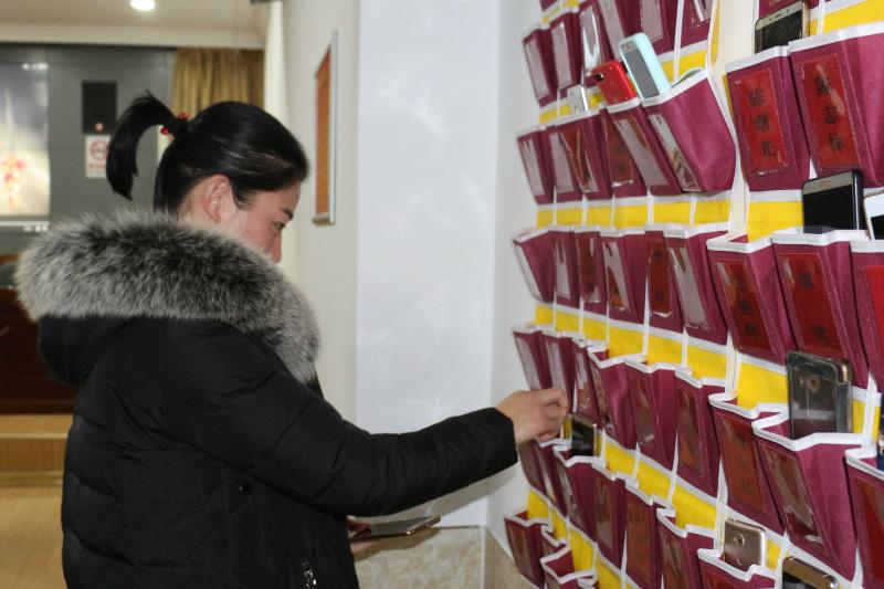 据了解,每个手机袋对应一个领导和参会人员的名字。不管你职位高地,开会前,请先交手机。每逢召开干部职工会议、安委会牵头单位会议时,将参会人员名单放入手机袋内,参会人员提前10分钟签到并把手机放在自己手机袋内,目前已成新常态。图为该县安委办参会人员会前放置手机。