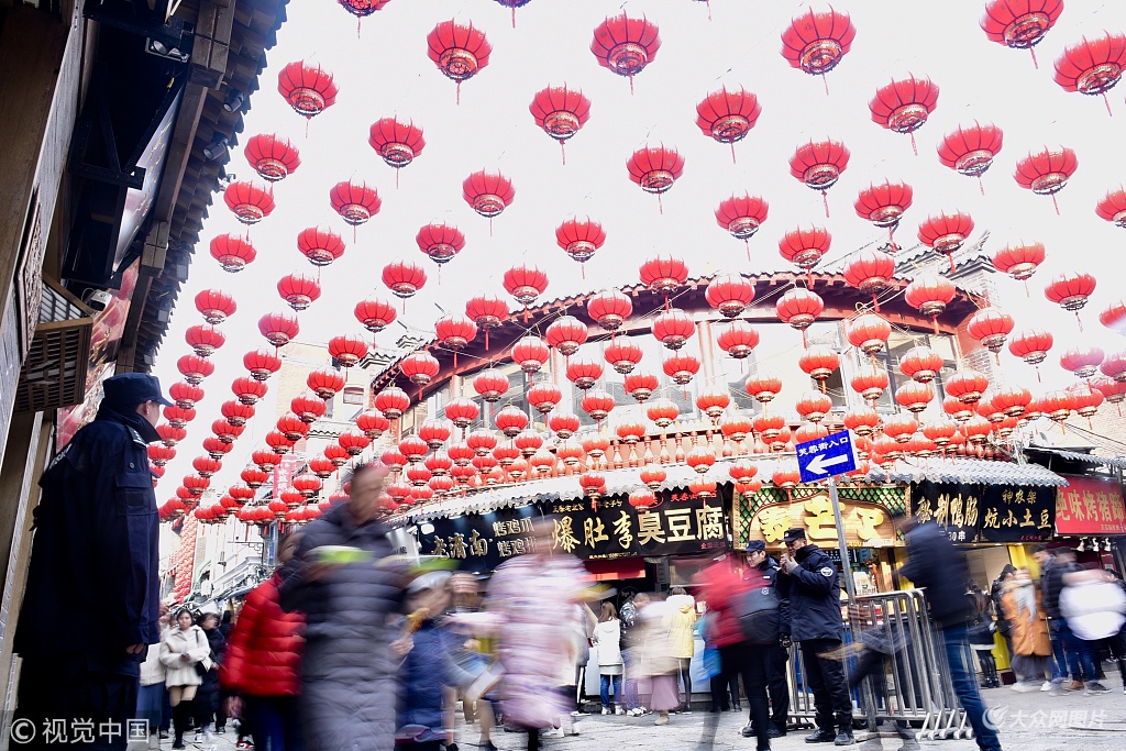 2019年1月1日,山东济南新开街的芙蓉街上挂满了红灯笼,为元旦假期增添了浓浓的节日气氛。
