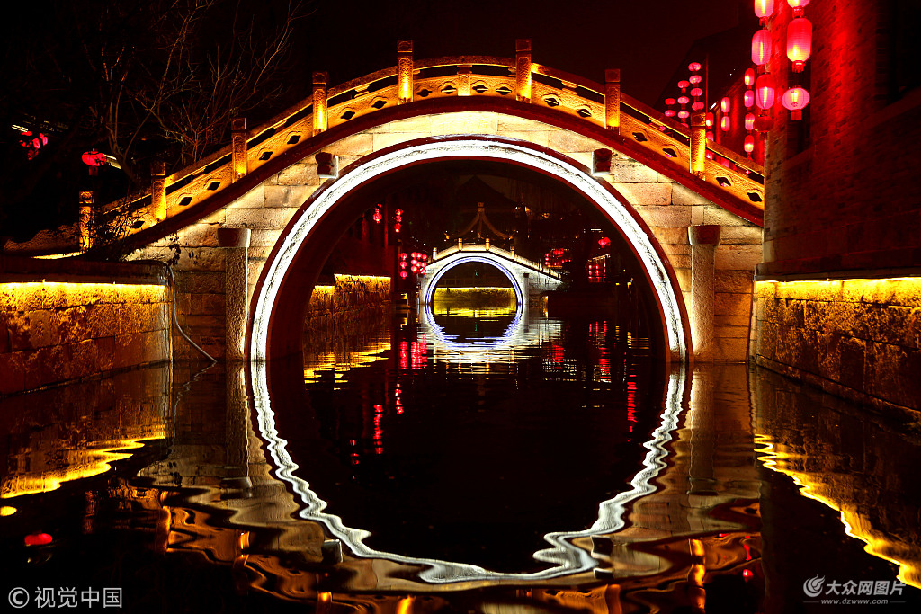 山东枣庄:台儿庄古城夜色斑斓 年味浓浓