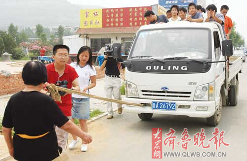 济南72岁神勇老太牙拖载十多人的4吨卡车(图)