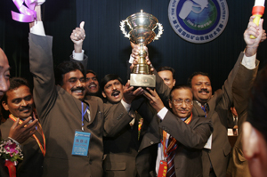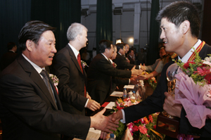 第五届国际矿山救援技术竞赛组委会主任、国家安全监管总局副局长王显政为获奖队员颁奖 |