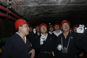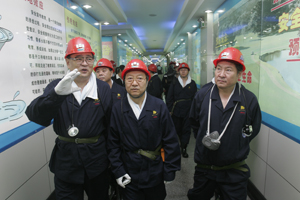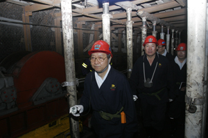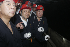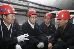9月28日下午,国家安全生产监督管理总局局长李毅中、国家煤矿安全监察局局长赵铁锤,在山东省副省长王仁元的陪同下,与参加全国国有重点煤矿安全基础管理工作座谈会的部分代表,到兖矿集团公司济三矿参观考察。