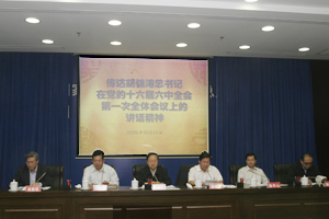 会上,李毅中、赵铁锤分别传达了全会精神,李毅中代表总局党组阐述了学习六中全会精神的初步体会。总局党组表示,完全赞成和拥护胡锦涛总书记代表中央政治局所作的工作报告,坚决与党中央保持高度一致。坚决贯彻执行党中央确定的方针政策和工作部署,提高自身素质,履行好肩负的职责。