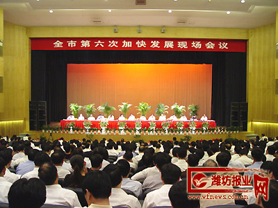 潍坊报业网讯 全市第六次加快发展现场会议,从5月28日开始,用三天时间,对各县市区、市属各开发区经济工作情况进行了观摩点评,5月31日在富华国际会议中心举行大会。