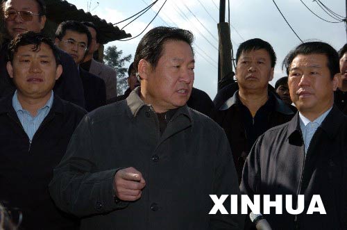 11月27日,国家煤矿安全监察局局长赵铁锤(前左)在云南省富源县后所镇昌源煤矿了解情况。11月27日,以国家煤矿安全监察局局长赵铁锤为组长的国务院工作组抵达富源县。在昌源煤矿,赵铁锤与富源县县长、煤矿技术员和分管副县长先后进行的对话,折射出这起偶然事故背后的必然。11月25日,云南省富源县后所镇昌源煤矿发生瓦斯爆炸事故,造成32人遇难、28人受伤,事故引起了各界的广泛关注。新华社记者王长山摄