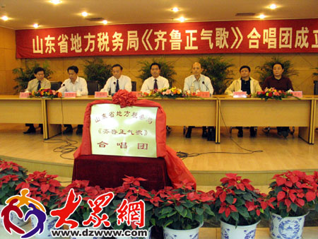 山东省首家“齐鲁正气歌”合唱团在省地方税务局举行揭牌仪式。
