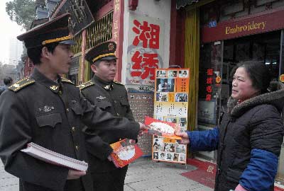 本报讯 “长沙是我家,管理靠大家,谢谢您对城市管理工作的支持,给您拜年了!”昨日,清水塘路2号门店主湛谢刚一开店门就收到了一份特殊的问候。开福区城管大队的执法人员为辖区内的门店送出了2000张亲手制作的新年贺卡,他们把城市管理的法规知识“打包”编成了顺口溜,并配上祝福语,送到经营户手中。