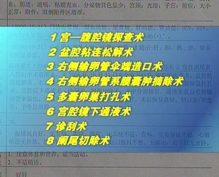 2006年10月,徐女士在上海协和医院检查,当天,就被实施了8项宫—腹腔镜手术。