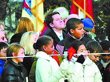 在欢迎胡锦涛的人群中还有一些来自华盛顿的学习中文的美国小朋友,他们齐声用中文说:“欢迎胡爷爷。”